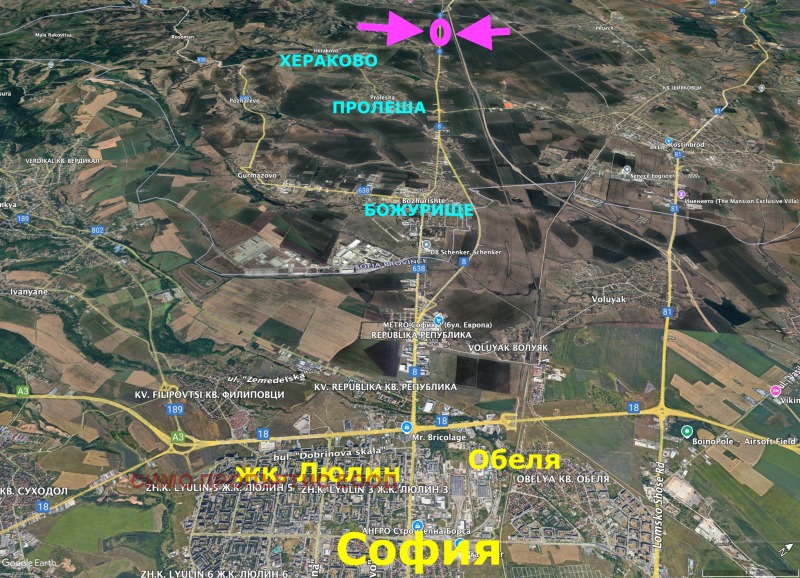 Хераково - община Божурище, на разстояние около 12 км. от София в западна посока.
