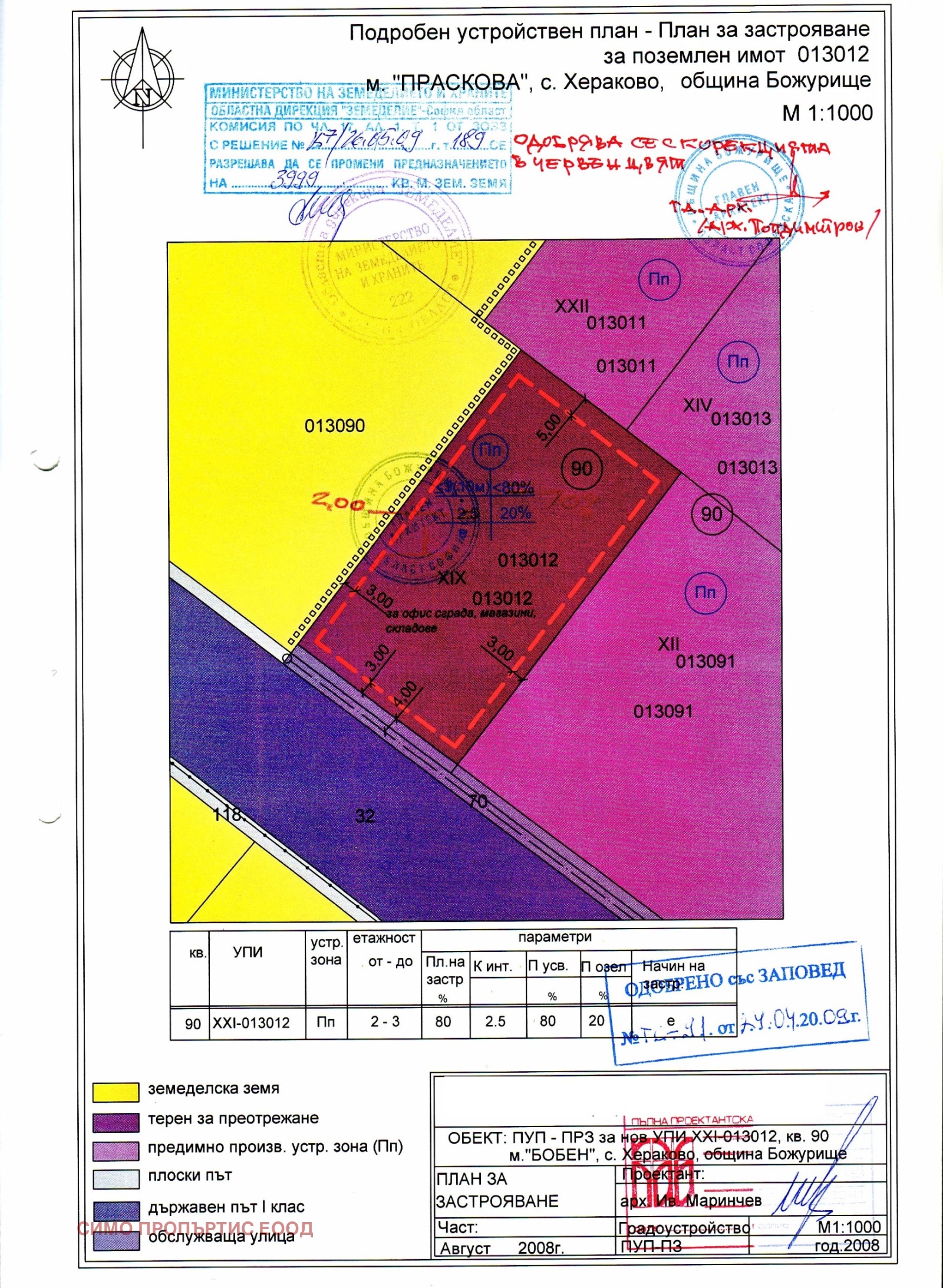 Устройствената зона, в която попадат имотите е Ц с показатели на застрояване