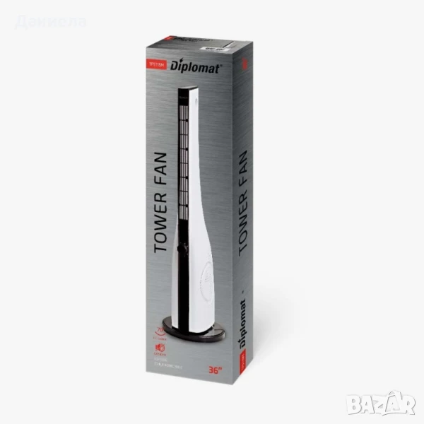 С вентилатора кула 36", получавате идеалната комбинация от елегантност, ефективност и удобство. Независимо дали търсите начин да охладите вашето работно място или да осигурите комфорт у дома, този модел предлага перфектното решение. С модерния си дизайн и безшумна работа, той ще се впише без усилие в съвременния ви интериор и ще ви осигури прохлада и комфорт през цялото лято.Мощност: 50W; Напрежение: 220-240V / 50-60 Hz; Размер на уреда: 900x230x230 мм; Ъгъл на осцилация: 70 градуса; Степени на скоростта: 3; Основен дизайн: Слим; Шум: Безшумен при работа.