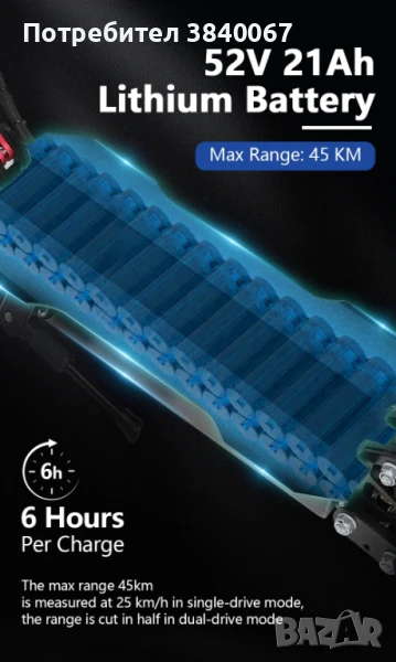 20–45 км (Действителният обхват може да варира в зависимост от теглото на ездача, терена, наклона и факторите на околната среда.)