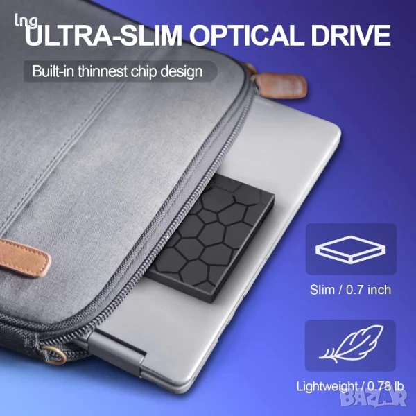 【USB 3.0 високоскоростен трансфер на данни】 Записване на CD с високоскоростна USB 3.0 технология, много от съединителите на клъстера на портовете са обозначени със син цвят и са съвместими с USB 2.0. USB 3.0 е актуализирана версия на USB 2.0, която предлага по-високи скорости на трансфер на данни до 5 Gigabits/S (625MB/S). Той е приблизително 10 пъти по-бърз от USB 2.0. В допълнение, CD устройството предлага максимална скорост на четене на DVDR от 8x и максимална скорост на запис/четене на CD от 24x, по-бързо, отколкото очаквате.