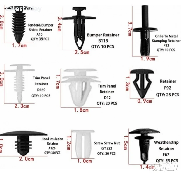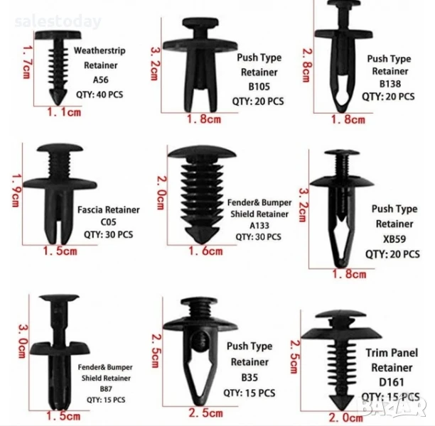 комплект от 421 броя фиксиращи авто клипсове закопчалки копка - щипка