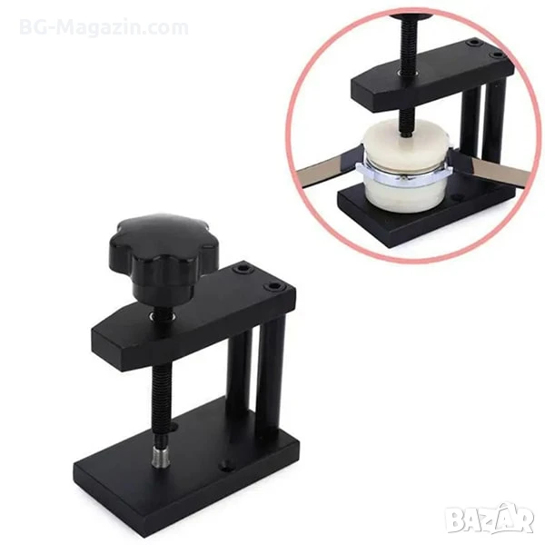 – Лесна употреба: Пресата е лесна за използване, дори и за начинаещи часовникари. Механизмът за затваряне с винт позволява лесно и прецизно регулиране на натиска.