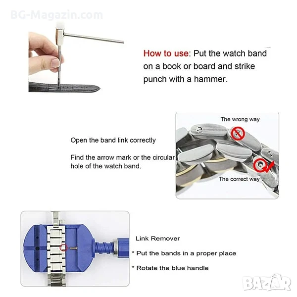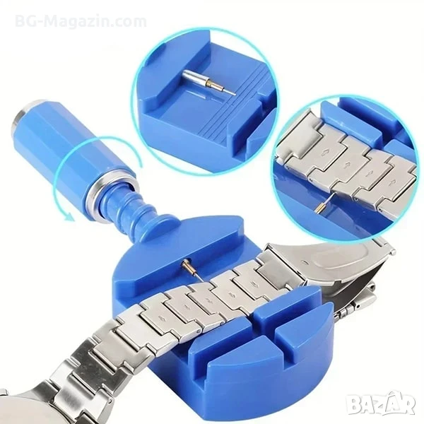 – Инструмент за премахване на патенти и връзки: Улеснява работата при подмяна на каишки или коригиране на техния размер.