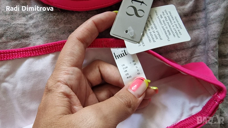 Банския на huit8 Paris е в размер М(38), горно- 75С. Долнището е с ниска талия и ефектно коланче. Цена на комплекта- 50лв. (Купуван е за тройно повече)