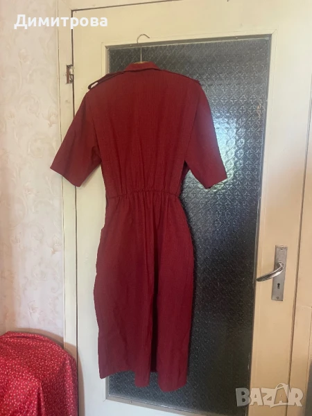 Нова червена рокля на квадрати с къс ръкав, 2 джобчета, с пагончета на раменете и кожени копчета.