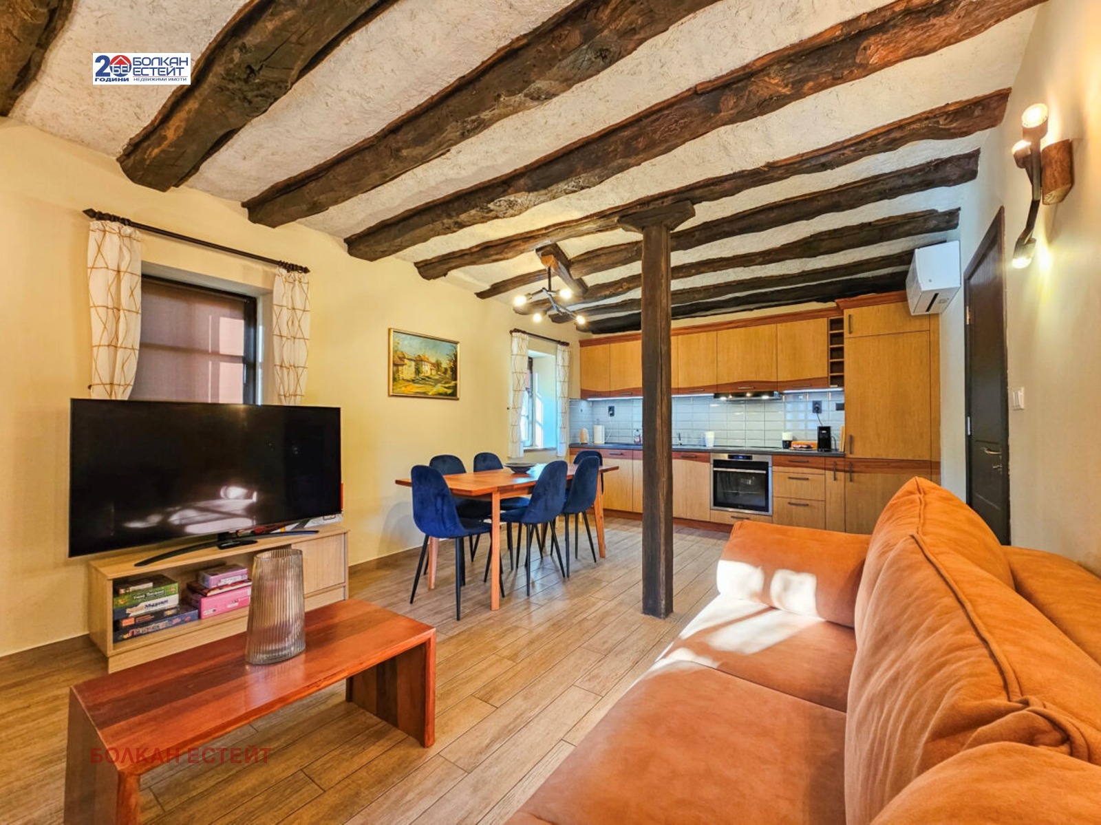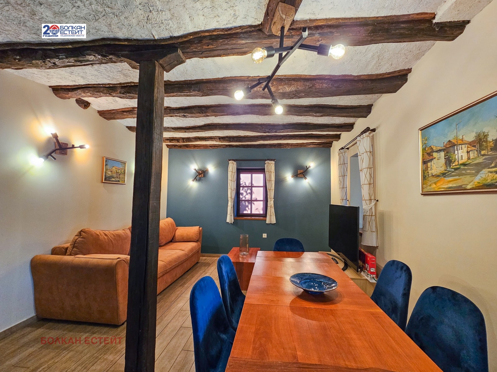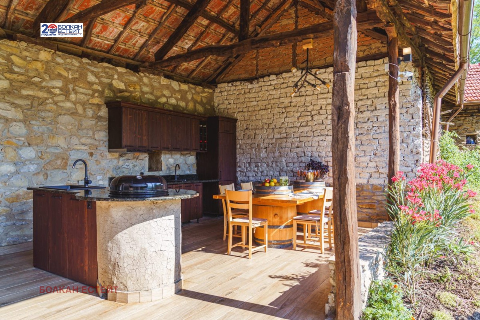 Къщата е реновирана с внимание към всеки детайл-висок клас дограма,външна топлоизолация,декоративни мазилки,каменни настилки,нов покрив- като е запазен детайла на старите български къщи.