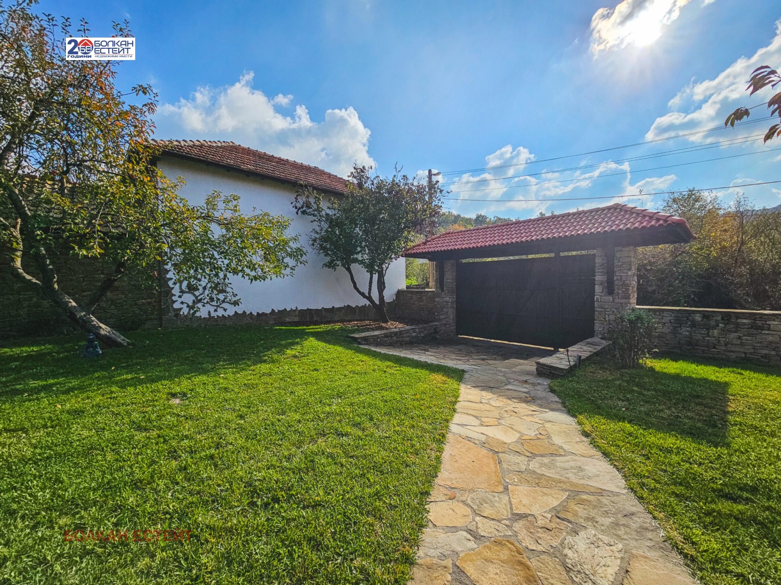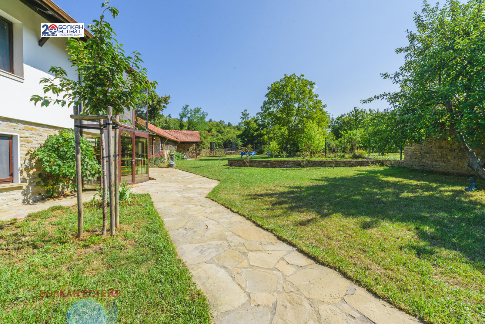 Агенция за имоти Болкан Естейт ПРОДАВА слънчева и просторна къща, намираща се на изключително уединено и красиво място сред много зеленина и сгушена в полите на Стара планина, в същото време на близко разстояние до град Велико Търново.