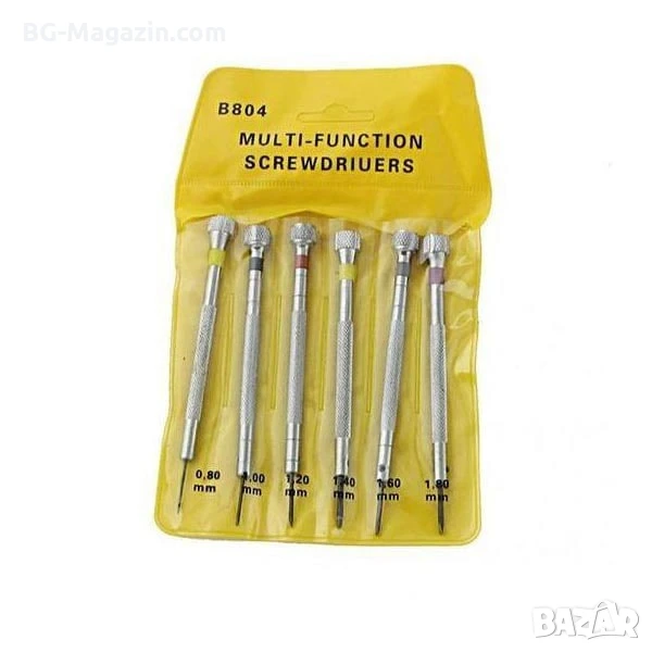 – Разнообразие от размери: Комплектът включва 6 отвертки с най-често използваните размери (0.80 мм, 1.00 мм, 1.20 мм, 1.40 мм, 1.60 мм и 1.80 мм), което ги прави подходящи за различни видове часовници и ремонти.