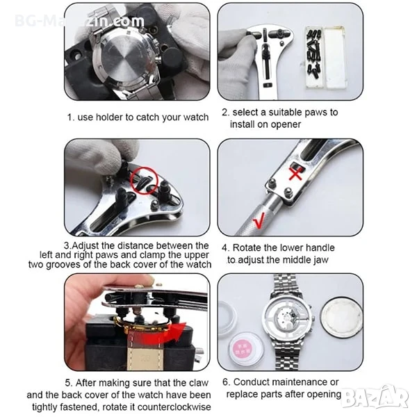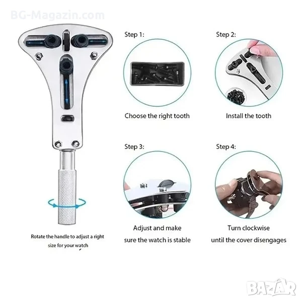 Професионалният часовникарски инструмент е незаменим помощник за всеки, който иска да се грижи за своята колекция от часовници. Неговите предимства, като регулируемост, разнообразие от накрайници, сигурен захват, високо качество и удобство, го правят идеален избор както за професионални часовникари, така и за любители. Поръчайте своята професионална отварачка за часовници още днес и се насладете на удобството и професионализма, които той предлага!