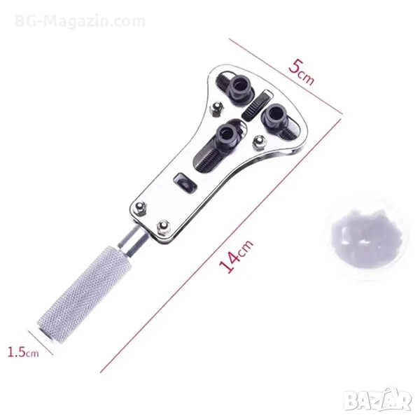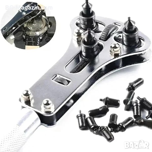 Представяме ви професионална отварачка за часовници – незаменим помощник за всеки часовникар, колекционер на часовници или човек, който иска сам да се грижи за своята колекция от часовници. Този инструмент е специално разработен за лесно и безопасно отваряне и затваряне на капаци на часовници с различни размери и видове.