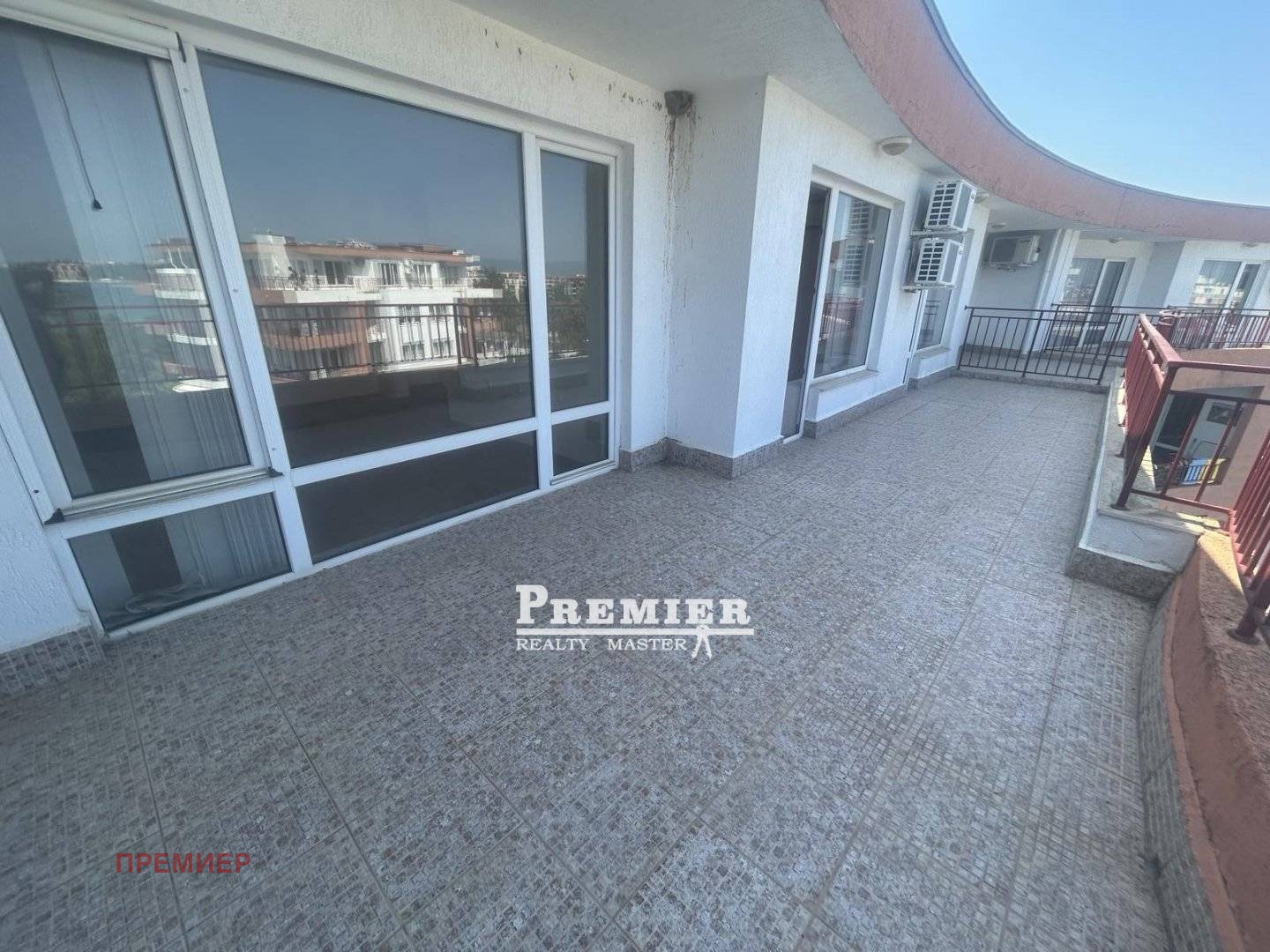 Предлагаме на вашето внимание тристаен апартамент в затворен комплекс на първа линия в Равда с фронтална гледка море. Имотът се намира на шести последен етаж с площ 112 кв. м. Апартаментът се състои от входно антре хол с кухня и трапезария, спалня, баня с тоалетна и голяма тераса с невероятна гледка море. Комплексът разполага с басейн, детска площадка, тенис корт, паркинг, видео-наблюдение, жива охрана. Такса поддръжка 14.5 евро за кв. м. за година. Подходящ както за целогодишно живеене, така и за отдаване под наем. БЕЗ КОМИСИОНА ОТ КУПУВАЧА!