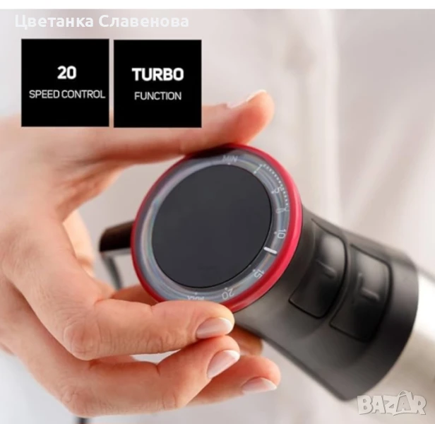 Скорости и турбо. 20 регулируеми скорости за приготвяне на всякакви рецепти; турбо функция за постигане на максимална мощност по всяко време и с натискане на бутон, независимо от избраната скорост.