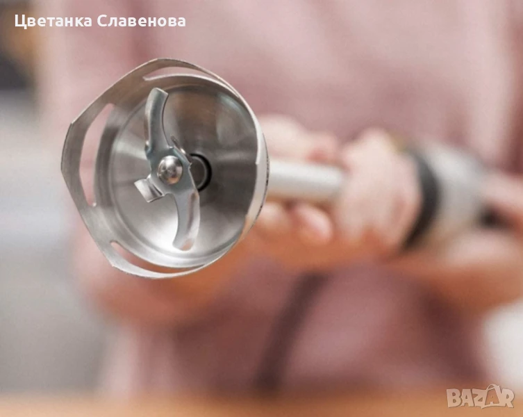 Пасира и нарязва. Ръчен миксер, който пасира и нарязва с високопроизводителни ножове от неръждаема стомана с двойно действие. Докато страничните ножове пасират, вертикалните ножове нарязват, изпълнявайки и двете функции едновременно; бързи и мигновени резултати.
