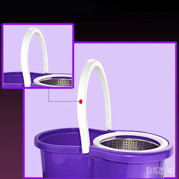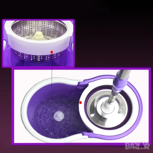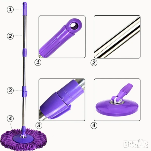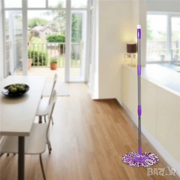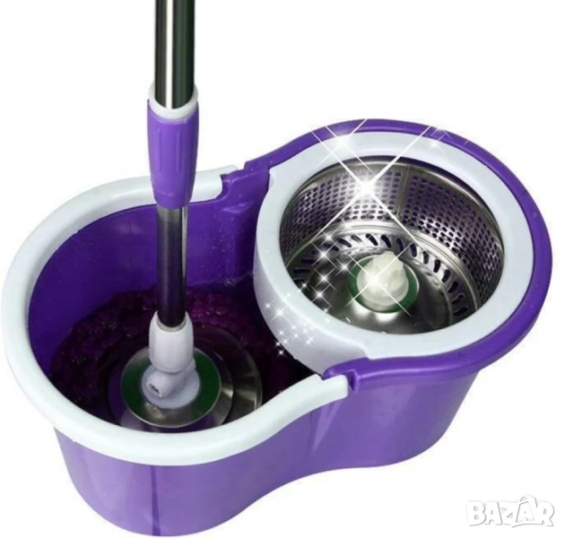 Моп за почистване на под - ламинат - spin mop 360 / Цвят: Според. нал в склада / Високо качество на почистване , висока ефективност при пране на микрофибърния парцал от 360 * центрофуга за изстискване; Не разливате вода и не вредите на настилките. Благодарение на центрофугата вие може да регулирате степента на влажност на микрофибърния парцал; Високата ефективност при изпирането на парцала става заради висока скорост на въртене в центрофугата; Чупещата глава на дръжката подпомага почистването и достигането до най-недостъпните места; Микрофибърния парцал се отстранява лесно и може да се замени с резервен .. като мръсния може да се изпере в пералня;