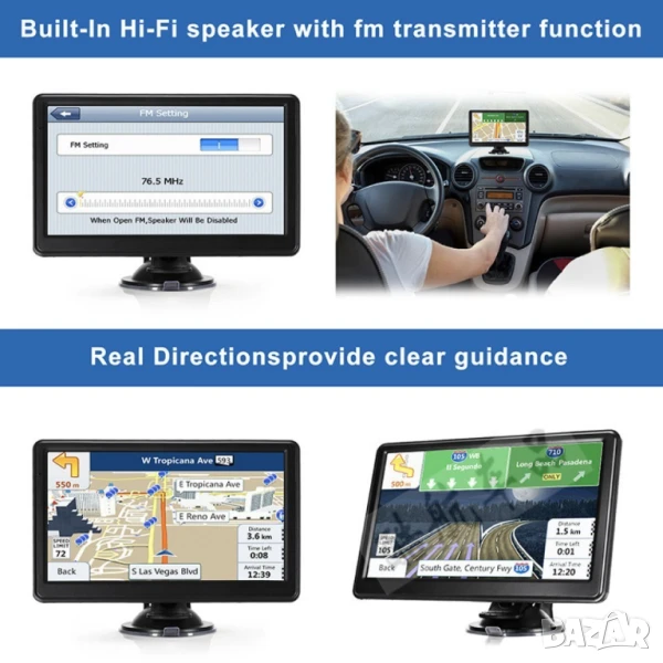 Навигация 7 нова P I O N E R Навигация с последен софтуер и карти на български език / Процесор: M s t a r MSB2521: 500MHz ARM9 + GPS BaseBand + Coprocessor + 3D Graphics Accelerator; Операционна система: Windows CE 6.0; Размер на екрана: 7 инча; Оперативна памет: 128Mb; Памет: 4Gb вградена; FM предавател: 88Mhz - 108Mhz; Антена: Вградена високочувствителна антена; Батерия: Вградена литиево-йонна батерия; GPS точност: до 1 метър.