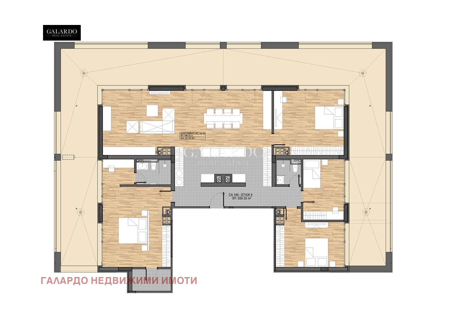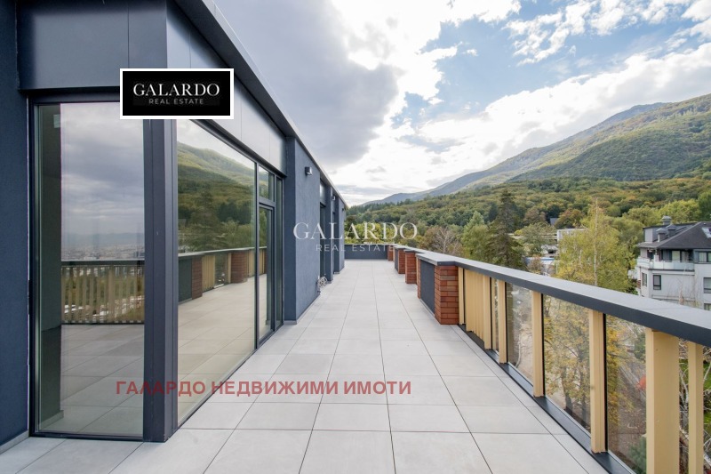 Galardo Real Estate продава панорамен и просторен пентхаус на последен етаж в бутиков в затворен комплекс в кв. 'Бояна'. Имотът е със застроена площ от 198.14 кв.м. и е с функционално разпределение и красиви гледки към София и Витоша. Изложение: югоизток/югозапад, североизток. Продават се с нивелирана подова замазка с шумоизолация и газово котле Bosch за отопление и подгряване на водата. Изградена електроинсталация и тръбни пътища за климатици в дневната и спалните. Дограмата е K?mmerling с троен стъклопакет. Комплексът е проектиран с прекрасно озеленено парково пространство, без достъп на автомобили във вътрешността на парка. Предвидени са детски площадки, ресторант, фитнес и различни зони за отдих. Намира се в близост до основна пътна артерия, спирки на градския транспорт, магазини и др. Цената е без вкл. ДДС Реф. 17281