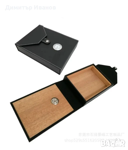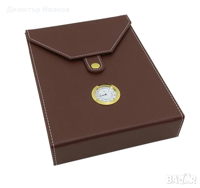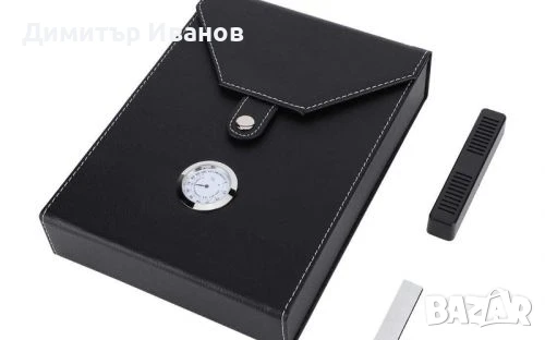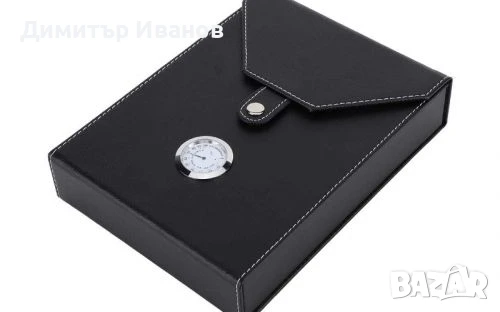 Естесвена кожа преносим хумидор със хидрометър и овлажнител → Обява 50978374