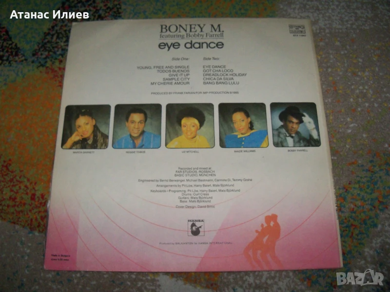 Boney M. – Eye Dance , ВТА 11947 , 1986г. Плочата е прослушана и е в отлично състояние.