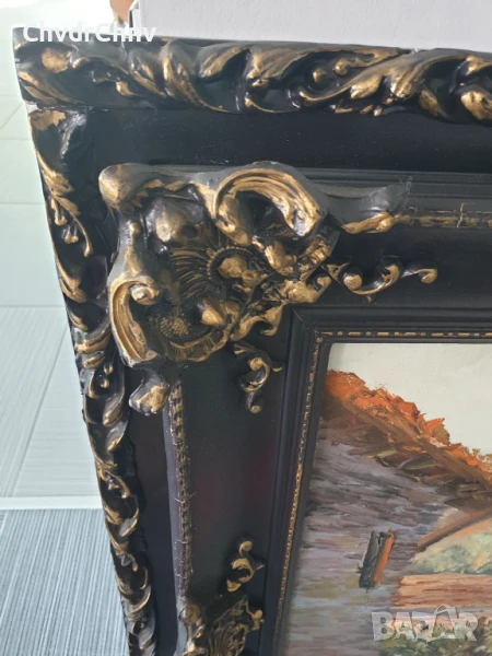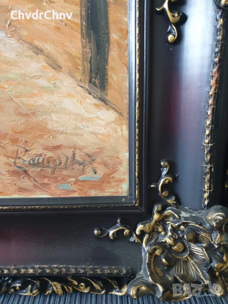 Рамката е уникална, със запазени гипсови орнаменти и има голям риск за повреди при транспортиране от куриер. И наложеният платеж ще е голям заради размера и теглото на картината. По-изгодно е да дойдете да я видите и вземете лично, имам и доста необявени картини.