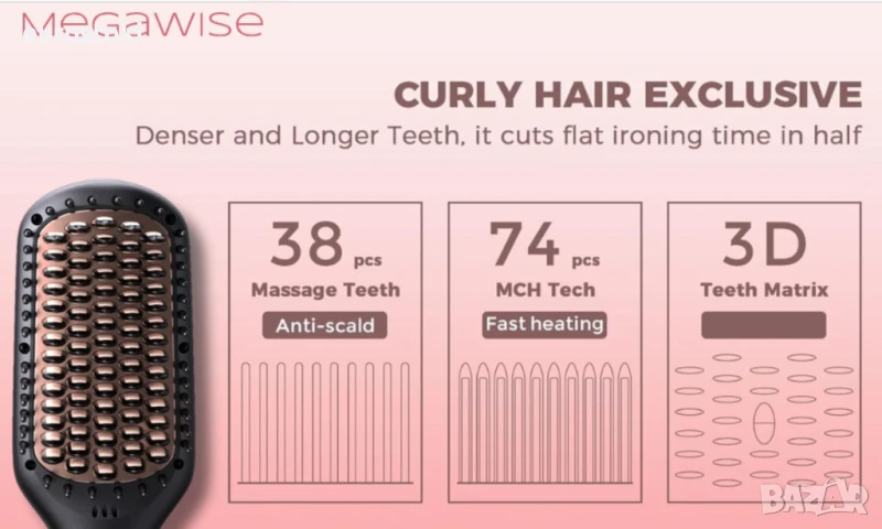 Открийте вътрешната си красота с тази четка за изправяне на коса. С добавени функции от 5% по-дълги и по-плътни нано нагревателни зъби, този магически инструмент е проектиран да работи перфектно върху всички типове коса, дори най-гъстата и къдрава. Кажете сбогом на къдренето и сбогом на гладката и права коса всеки ден.