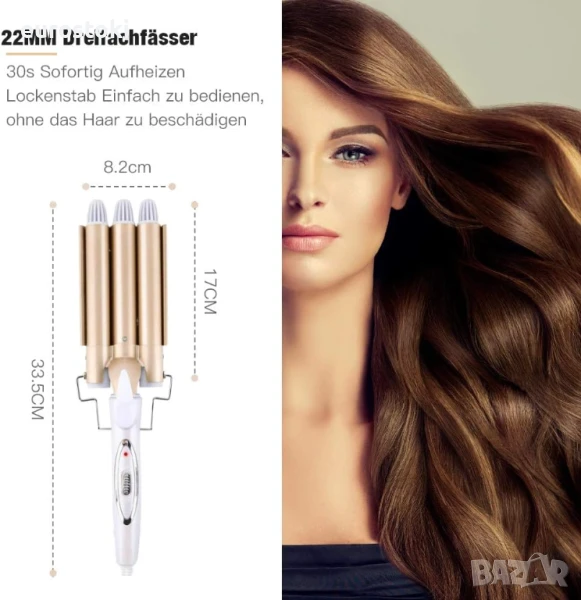 Reyke 3-цевна маша за големи вълни, маша 22мм с регулируема температура, бързо нагряваща се маша за големи вълни за дълга/къса коса, инструмент за стилизиране на коса.
