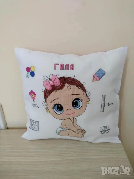 ръчно бродирана възглавница визитка с име → Обява 50979276