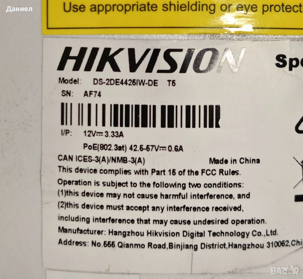 Продавам употребявана 4MP IP PTZ камера с 25х оптичен зуум - Hikvision DS-2DE4425IW-DE, с интегриран Deep Learning алгоритъм за класификация на обекти - човешка фигура и автомобил