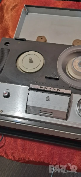 Ретро магнетофон, състояние видно на снимките изключително запазен за годините си, същият функционира върти поставките за ролките, работещ върток (стоп,пауза, превъртане)разполага с кабел за колона,същият е за колекционери, декор,интериор, фенове на ретро предмети и по предназначение. Цената не подлежи на коментар.