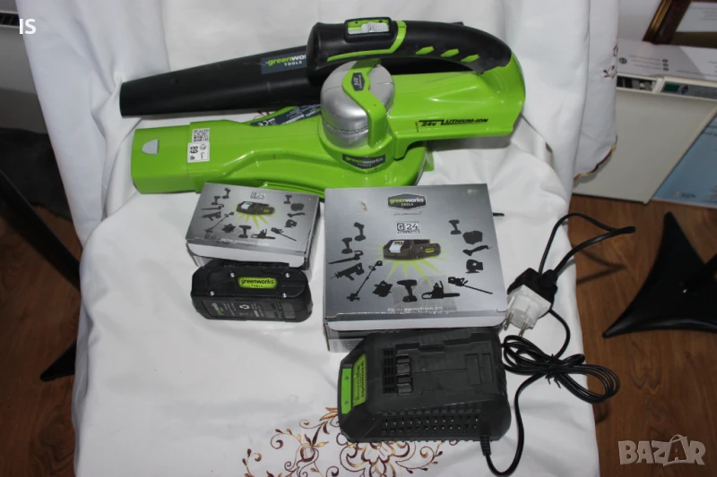 Акумулаторна духалка Greenworks 24V /възуходувка, листосъбирач/ с батерия и зарядно устройство → Обява 50979753