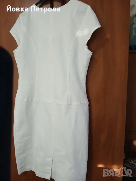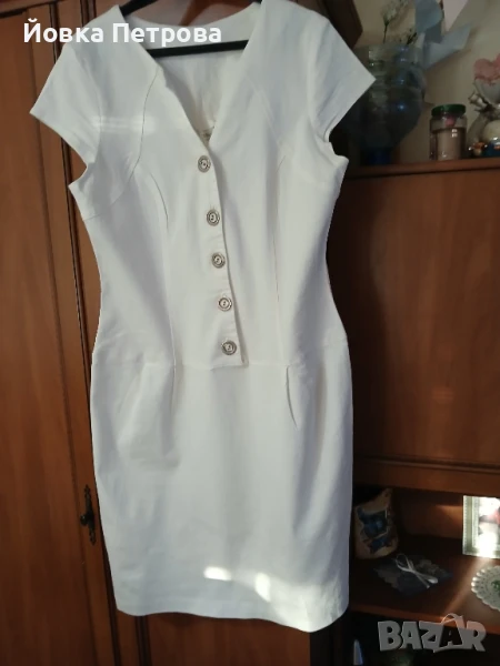 Бяла рокля, стегната по тялото. Много добра кройка, с ефектни копчета, подходяща за ежедневна и празнична визия.