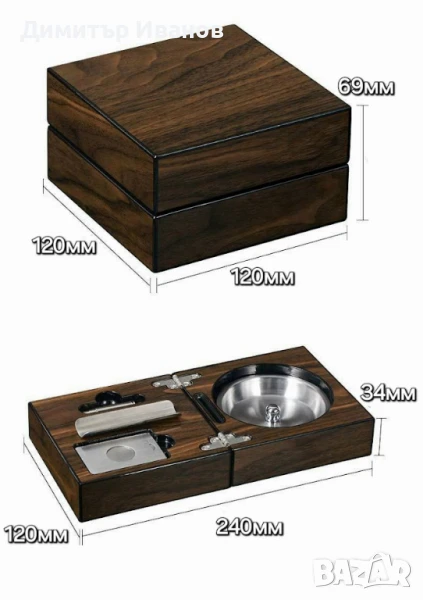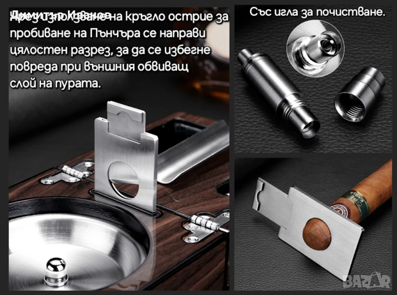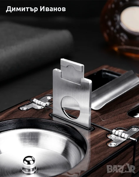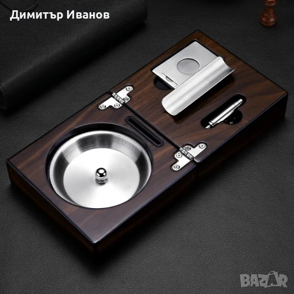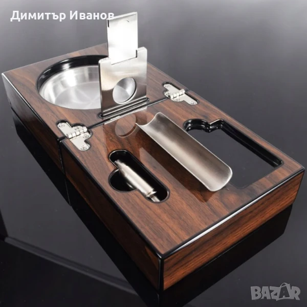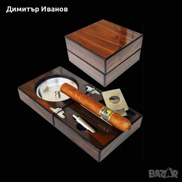 Кедров пепелник със стойка, ножица и пънчър за пури → Обява 50979982