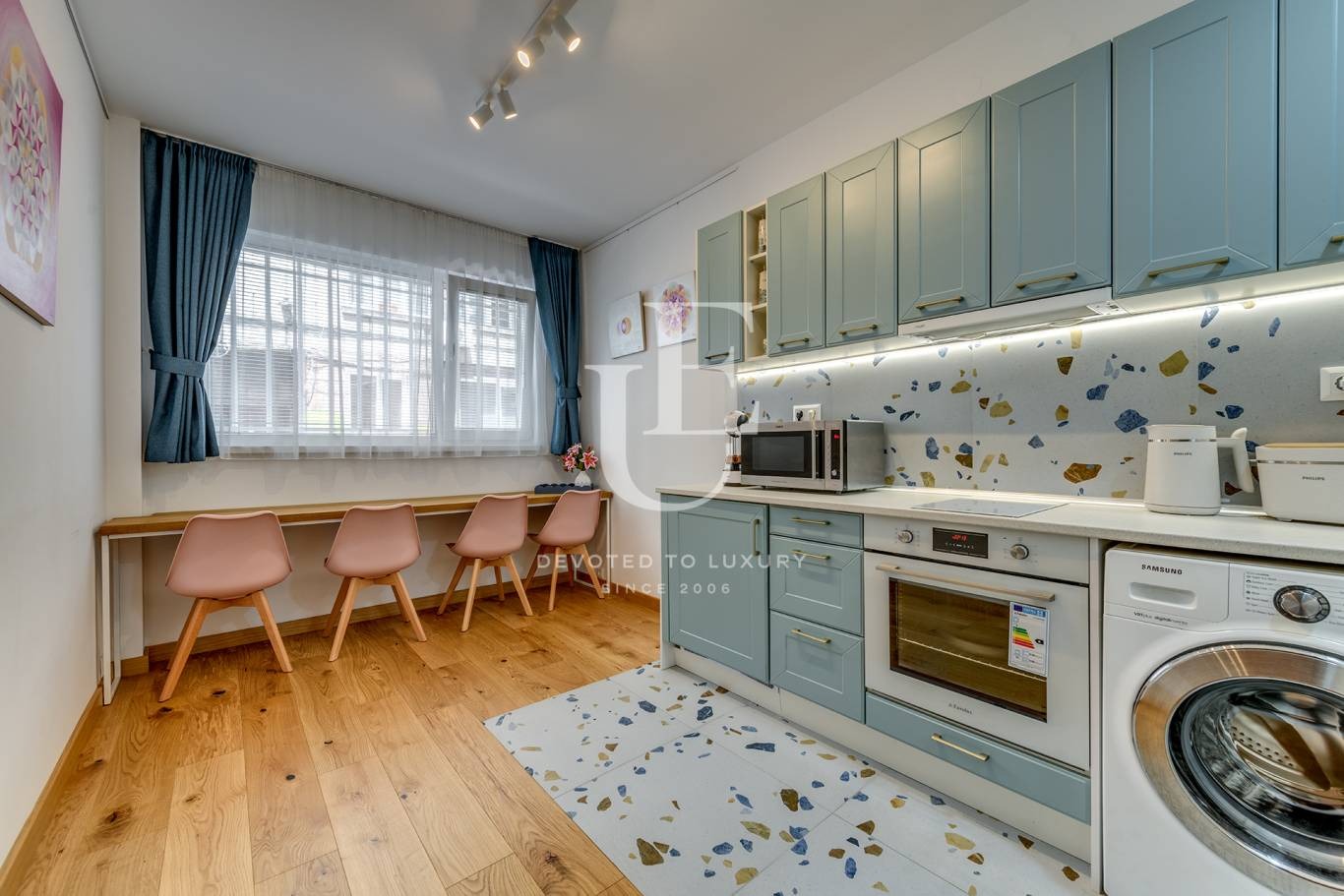Предлагаме Ви функционално и стилно жилище, разположено в сграда с отлична локация, само на крачки от емблематични ресторанти, културни институции, театри, галерии и основни градски удобства.