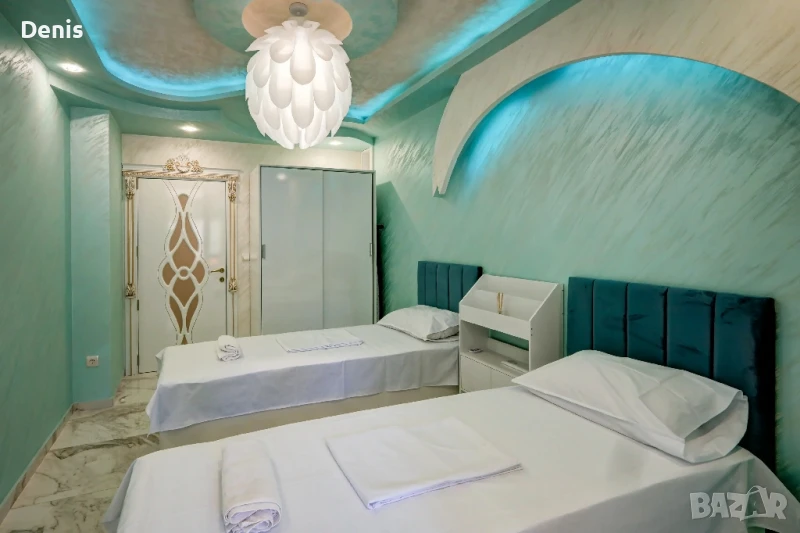 2 бр, луксозни единични с подматрачни легла, двоен гардероб, скрин, климатик висок клас, с декоративни мазилки и полилей, сеник по вратата и прозорец,,