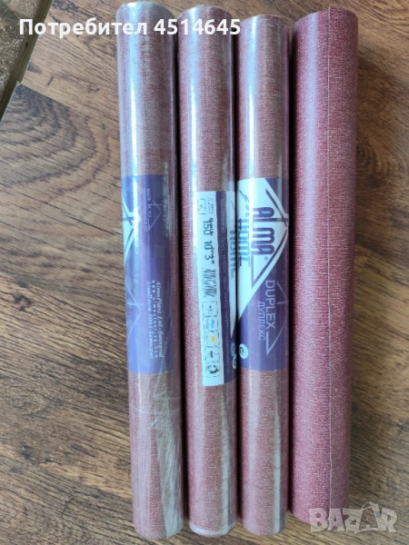 Тапети Duplex 4 ролки по 100/53 см. в елегантен цвят на вино. Възможно е лично предаване в района на Младост 1 или с.Лозен.
