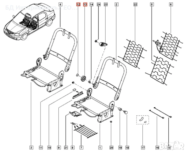 Монтаж - Предна Лява седалка или Предна Дясна седалка