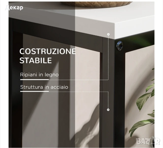 Масивна стоманена рамка и дървени рафтове, които осигуряват здравината на конструкцията