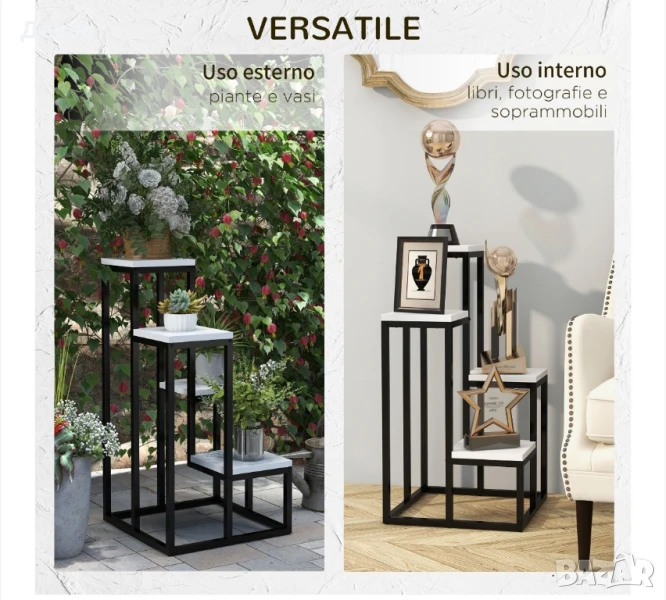 Поставката за растения Outsunny е идеалната поставка за саксия за всяко пространство. Комбинацията от дърво и стомана прави конструкцията солидна и устойчива, докато минималистичните линии ви позволяват да комбинирате тази вертикална опора за растения с различни стилове на декорация, както на закрито, така и на открито. Дизайнът на 4 нива предлага място за растения с различни размери и можете също да го използвате като рафт, за да покажете любимите си елементи.