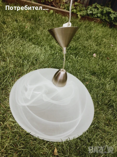 Два стъклени плафона за висяща лампа. Единият е с окабеляването. Размери в диаметър на снимките 30 см и 36 см. Стоят много красиво! Цената е за един брой! Може лично предаване за град Перник