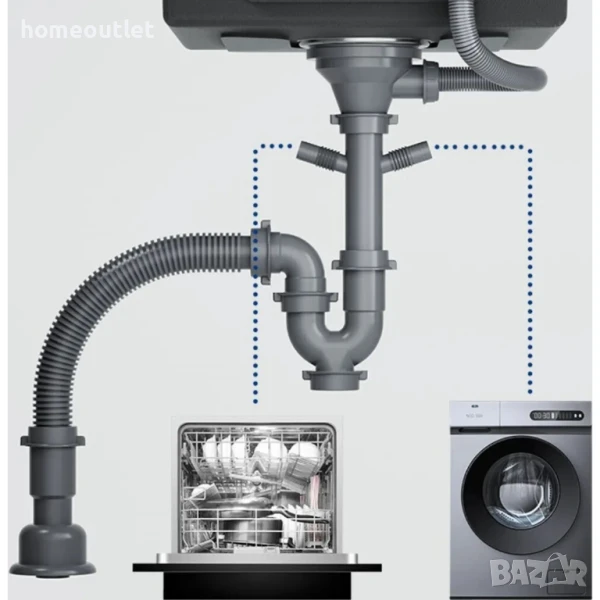 Освен това, благодарение на 2-те връзки, можете да свържете пералня и съдомиялна машина, за да оптимизирате пространството и да улесните използването на уредите.