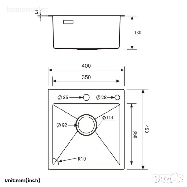 Мивката е изработена от висококачествена неръждаема стомана.