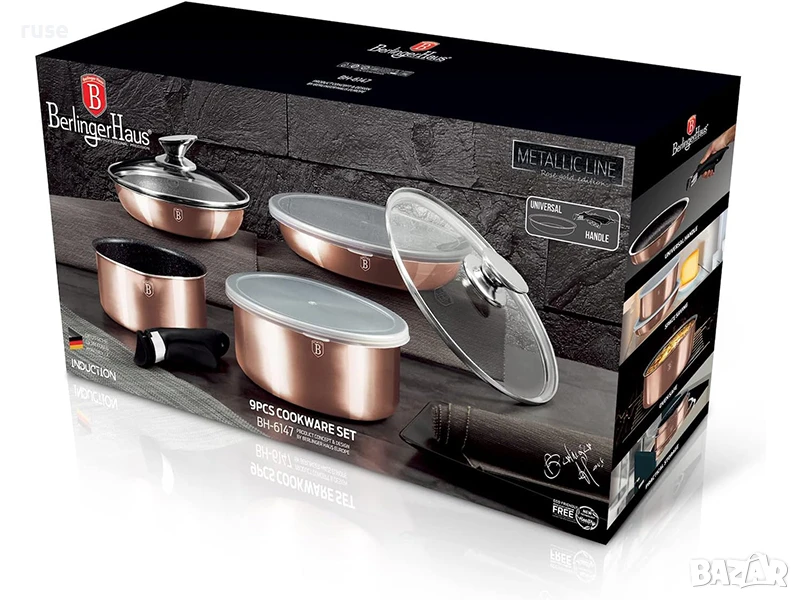 НОВ! Комплект съдове Berlinger Haus – 9 части, индукция, удобна дръжка