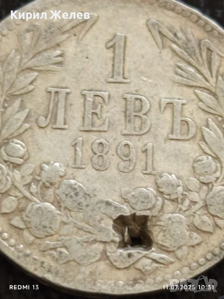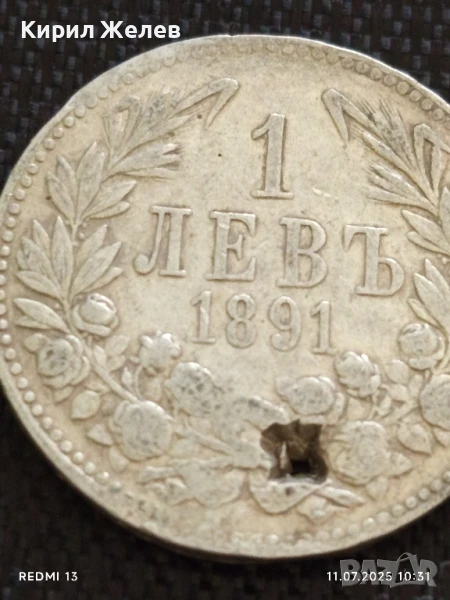 Сребърна монета 1 лев 1891г. Княжество България продупчена за НАКИТ,НОСИЯ, КОЛЕКЦИЯ 41443 → Обява 50984016