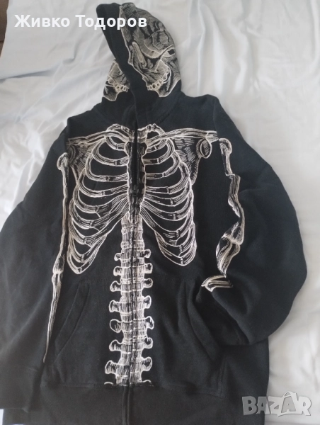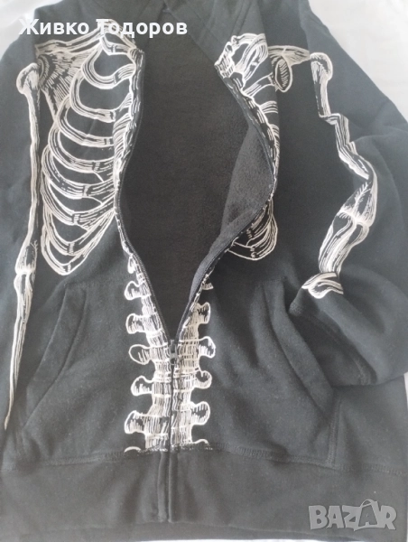 Флуоресцентен (светещ на тъмно) суитшърт/худи със скелет - 30 лв.