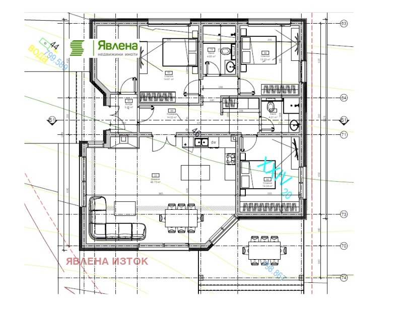 Явлена - Изток продава еднофамилна, самостоятелна, новострояща, масивна къща в с. Големо Бучино, разположена на 10 минути от Околовръстен път. Живописна локация в началото на селото ( от страната на с. Мало Бучино и гр. София), предлагаща тишина, спокойствие и бърз достъп до удобствата на големия град. Това е седма по ред къща която изграждаме в района (можем да покажем всяка една от продадените къщи), като общата концепция е с визия на китно планинско кварталче от едноетажни, самостоятелни къщи със сходна визия и архитектура. Проекта се изпълнява от доказан строител-инвеститор с богат опит в строителството със завършени проекти в района и околностите на София. Имотът се състои от масивна сграда на едно ниво, със ЗП от 172 кв.м и самостоятелен ъглов парцел УПИ с площ от 570 кв.м. и лице на две улици Висок клас на влаганите материали: Тухли Winerberger дограма REHAU( цвят антрацит) с троен стъклопакет, изградена инсталация за подово отопление и подготовка за термопомпа, външна изолация 12 см., смесена фасада с дървесни елементи от етал бонд, висок клас ВиК инсталации, окабеляване за СОТ и видеонаблюдение, покрив с гредова конструкция, хидроизолация, паропрупосклива мембрана и керемиди Брамак (цвят антрацит ) височина на таваните 2.80м. В подпокривното пространство е обособена площ от 80 кв.м като най- ниските точки са 1.50м. Ограден двор с автомобилна и пешеходна врата, изградени паркоместа за 2 до 3 автомобила, както и пешеходни алеи до и около къщата, изградена поливна система и озеленяванес висока и ниска растителност. Имотът се издава на шпакловка и замазка с описаните подобрения, въведен в експлоатация. Разпределението на помещенията е: просторна дневна с кухненски бокс и трапезария 49 кв.м с излаз към веранда, три спални, две бани с тоалетни, техническо помещение. Сградата е проектирана с висок клас на енергоефективност. В продажба е и съседната къща която е идентична на тази. Обявената цена е без включен ДДС. Предлагаме и вътрешни довършителни дейности на преференциални цени с високо качество и кратки срокове на изпълнение. За подробна информация, огледи и детайли моля търсете Петър Станимиров 0885856886!