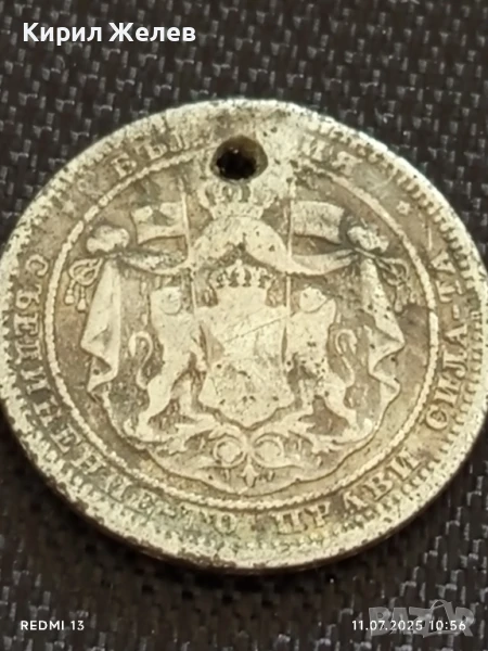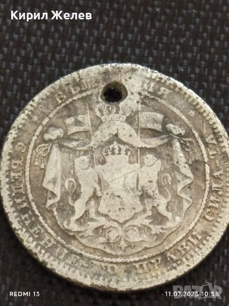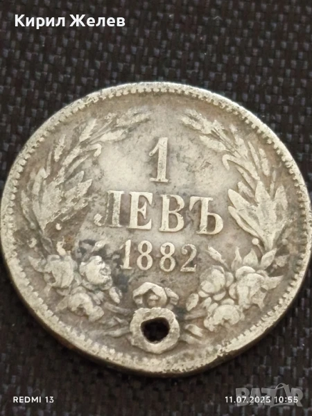 Сребърна монета 1 лев 1882г. Княжество България продупчена за НАКИТ, НОСИЯ, КОЛЕКЦИЯ 46996 → Обява 50984282