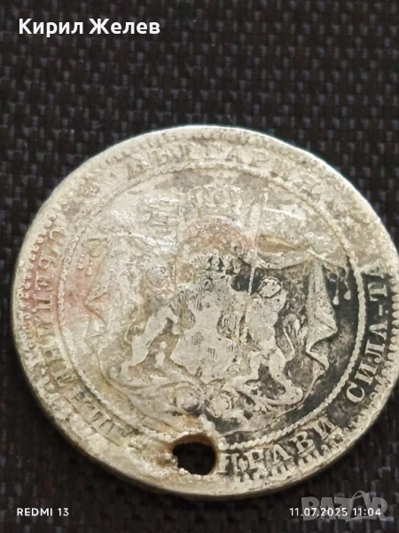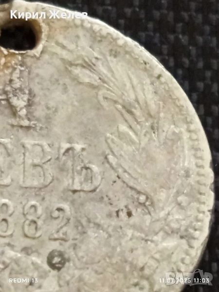 Сребърна монета 1 лев 1882г. Княжество България продупчена за НАКИТ, НОСИЯ, КОЛЕКЦИЯ 33381 → Обява 50984405