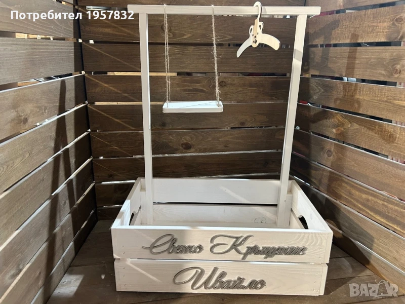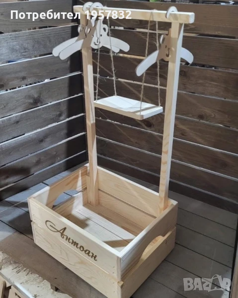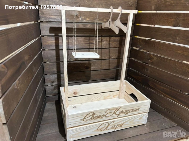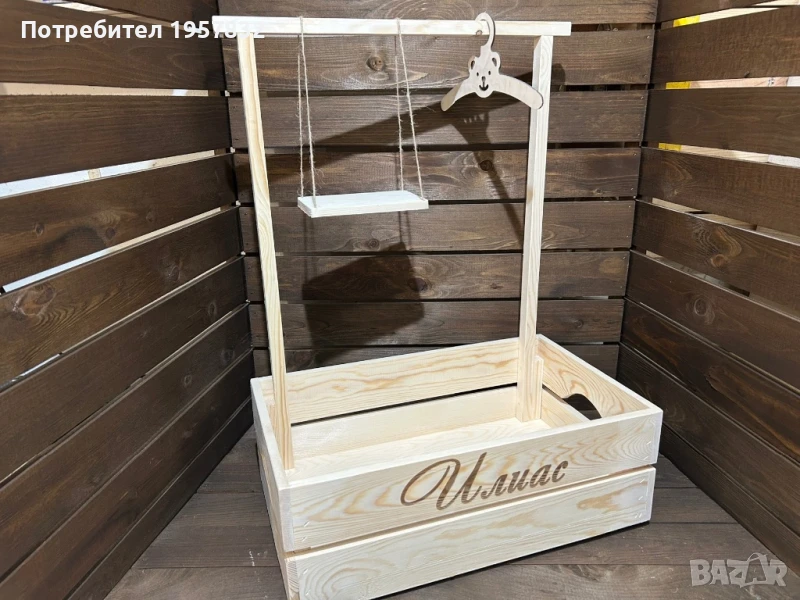 Дървеното гардеробче е не просто красив декор, а и практичен аксесоар за бебешки дрешки. Идеален за кръщене, първи рожден ден , погача или подарък за новородено.