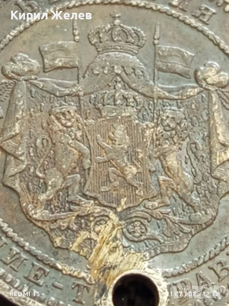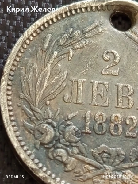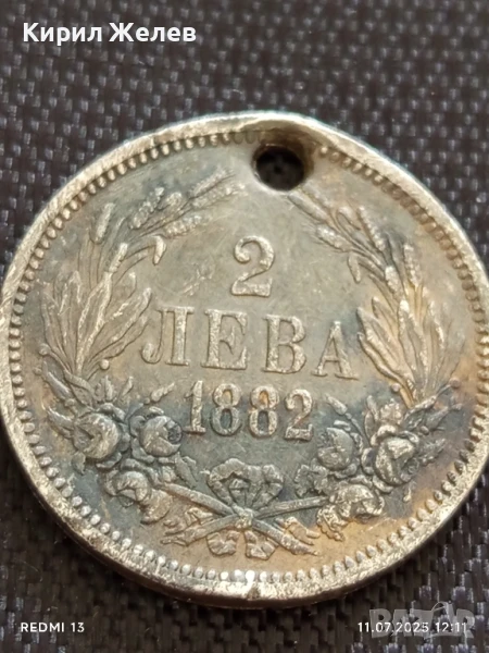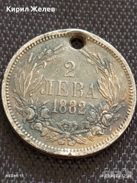 Сребърна монета 2 лева 1882г. Княжество България продупчена за НАКИТ, НОСИЯ, КОЛЕКЦИЯ 35603
