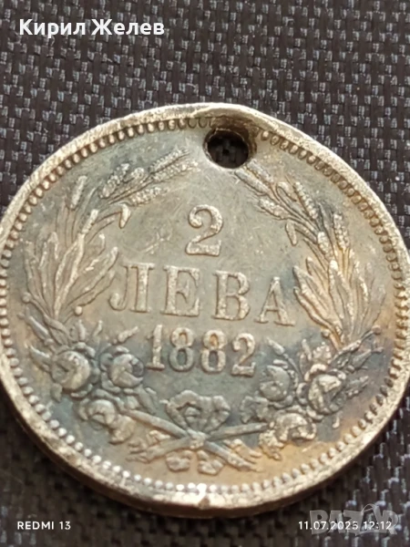 Сребърна монета 2 лева 1882г. Княжество България продупчена за НАКИТ, НОСИЯ, КОЛЕКЦИЯ 35603 → Обява 50985382